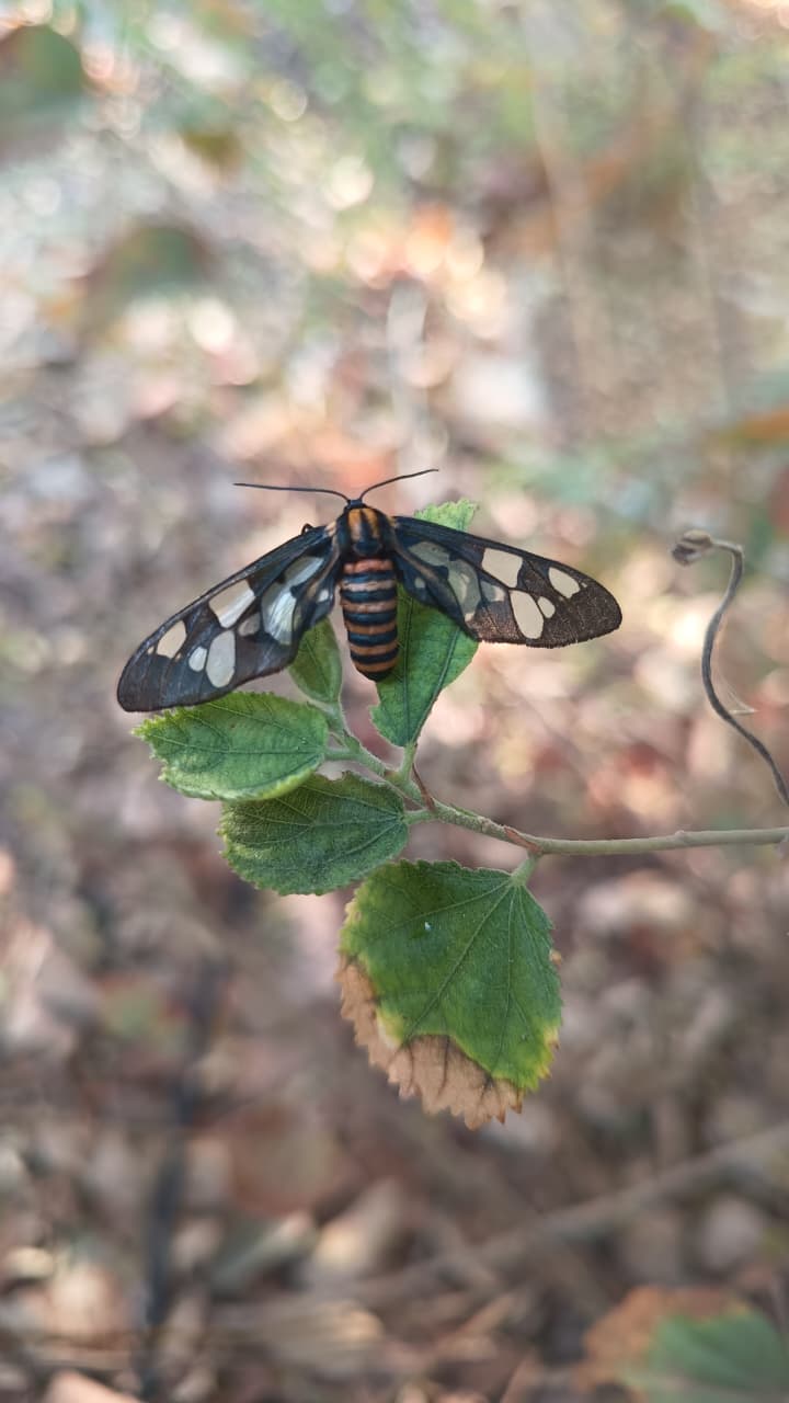 During the nature walk in Chikuwadi, children observed various small insects around them. One interesting insect observed was the Sandalwood defoliator, Amata passalis. During the observation, the eggs of this insect were also seen on the plant, which helped students understand a part of its life cycle and how insects grow and develop in nature.