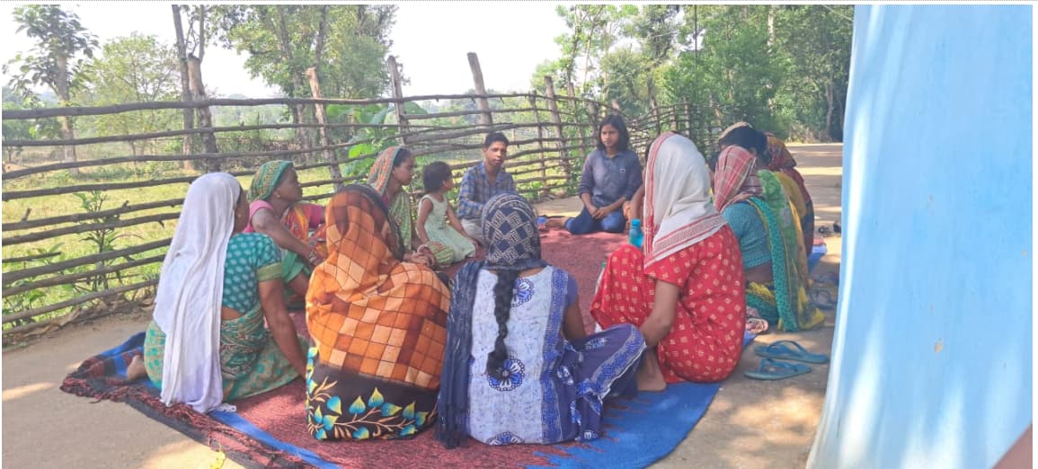 A picture from Gajapati, Odisha. Our Grassroot fellow is facilitating a Chuppi Todo Baithak (CTB) session participated by both men and women of a community.