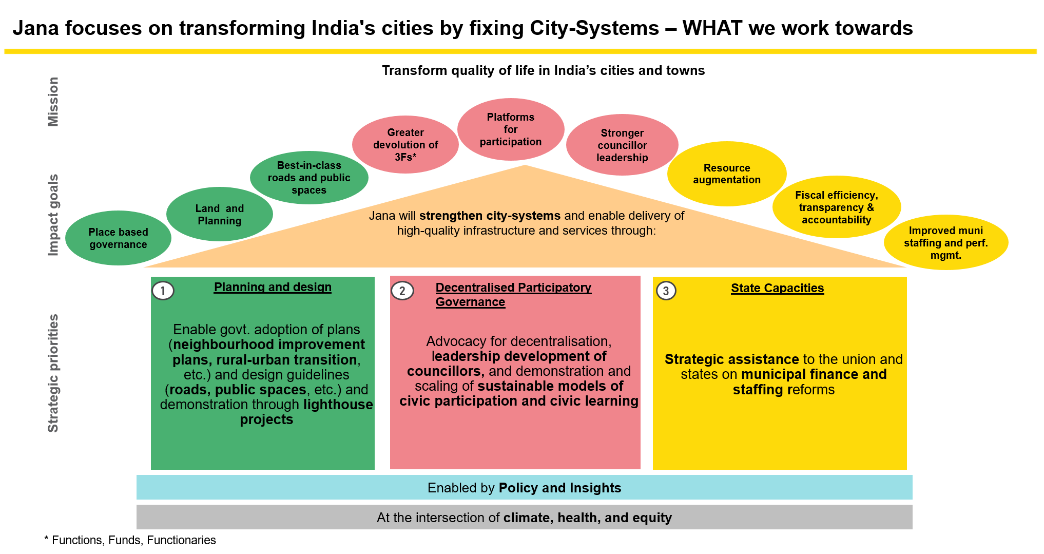 We work across three city-systems with nine specific impact goals: