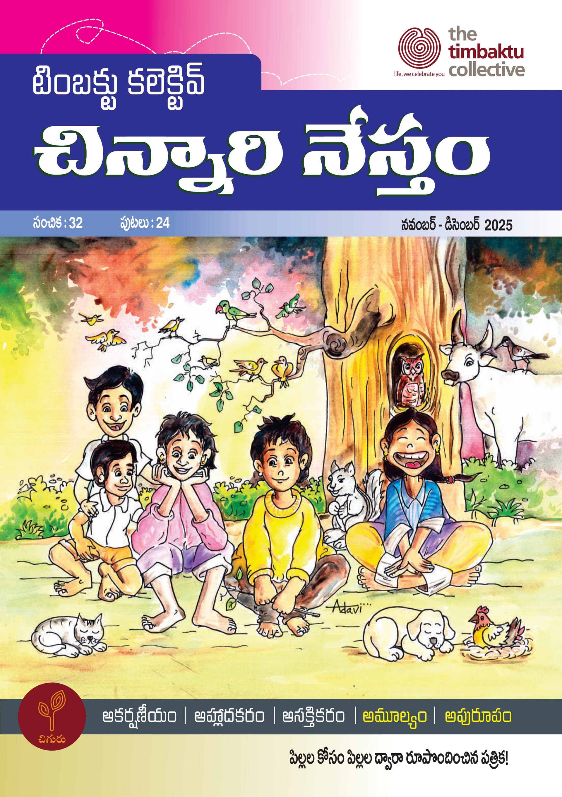The animated film documenting Timbaktu Collective’s 35-year journey entered post-production, with a release planned for the next financial year. Additionally, 28 social media posts were made to disseminate knowledge. The 32nd edition of the children’s magazine Chinnari Nestham was published covering a wide range of topics including literature, child rights, ecology, logical reasoning, general knowledge, and drawings.