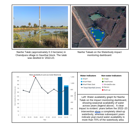 While satellite data can detect reduced water availability over time, prioritizing waterbodies for rejuvenation would benefit from integrating primary data such as: