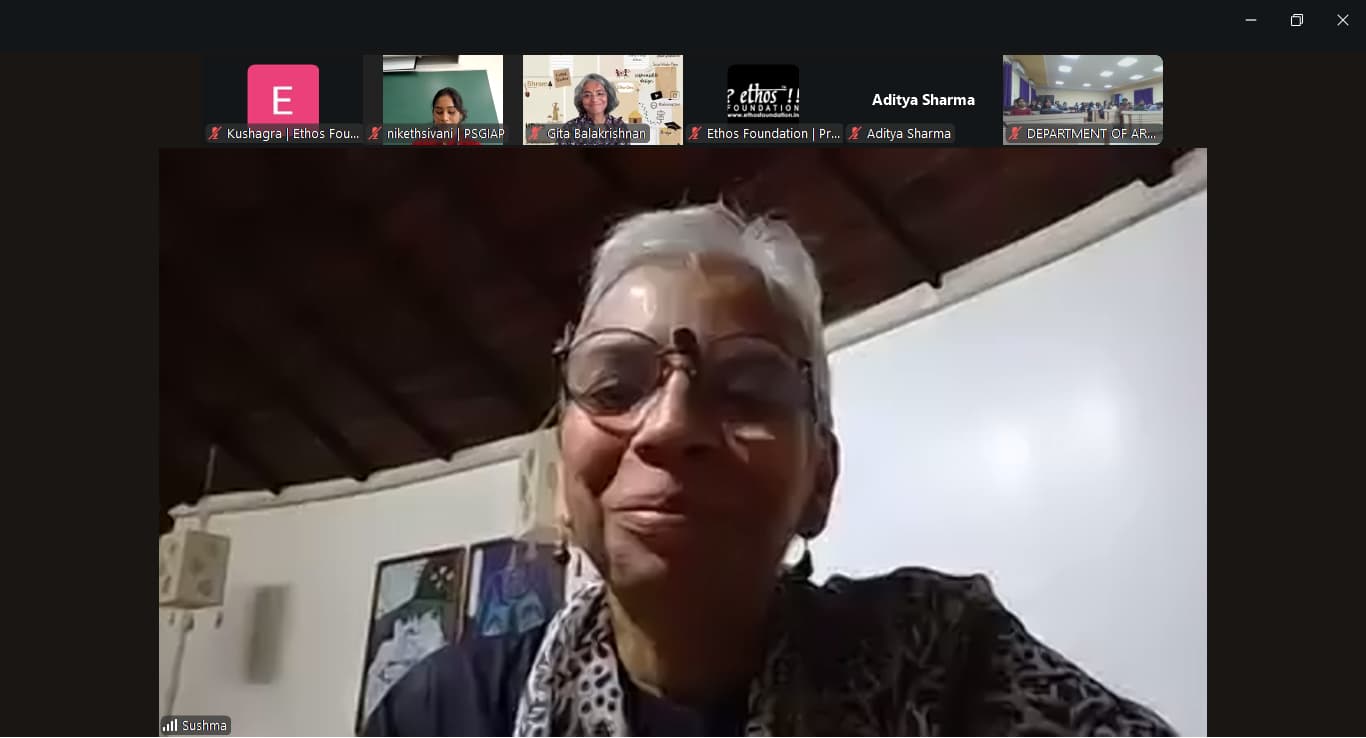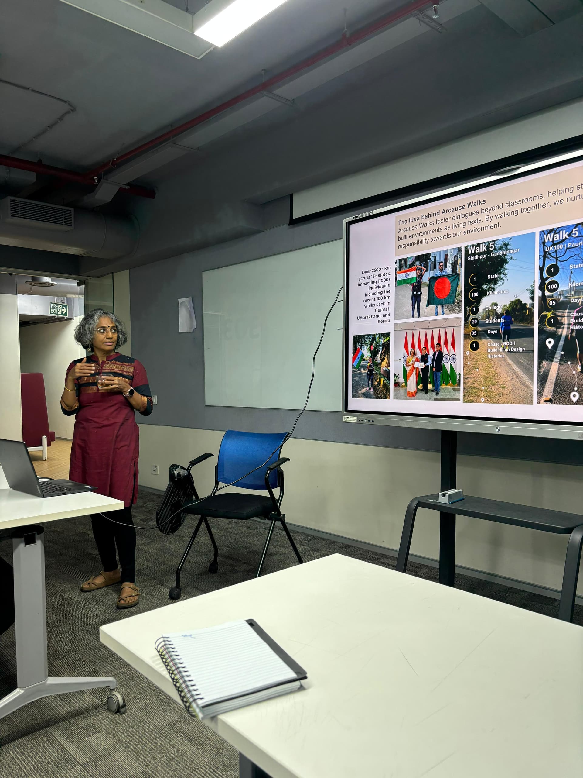 This edition featured two exceptional speakers. Ms. Sushma Iyengar, a pioneer in community development, shared her decades of experience working with rural communities, focusing on craft, local knowledge, and the idea of development rooted in dignity. Ar.